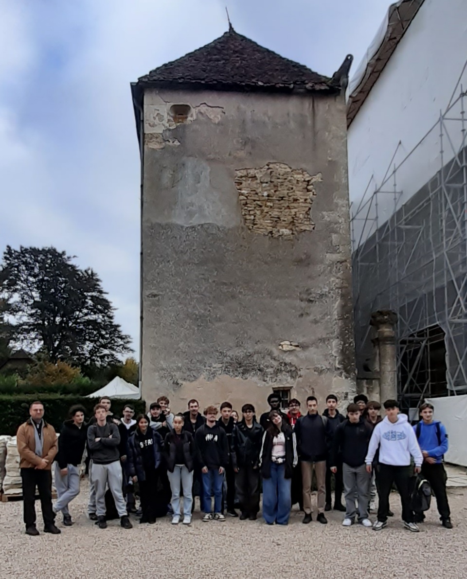 - une seconde durant l'après-midi du 16/10/25 où les élèves de cette spécificité ont pu découvrir l'histoire du Château de JAULNY et en quoi consistait la restauration d'un monument du patrimoine historique (ici une des deux ailes du château actuellement en cours de restauration) et pour lequel nous avons été reçu par son propriétaire Monsieur PENETRAT Emmanuel; par ailleurs, un chef de chantier d'une entreprise spécialisée en taille de pierre a pu expliquer à nos élèves comment ces matériaux étaient sélectionnés et taillées pour effectuer des remplacements au niveau des murs extérieurs du château à restaurer.